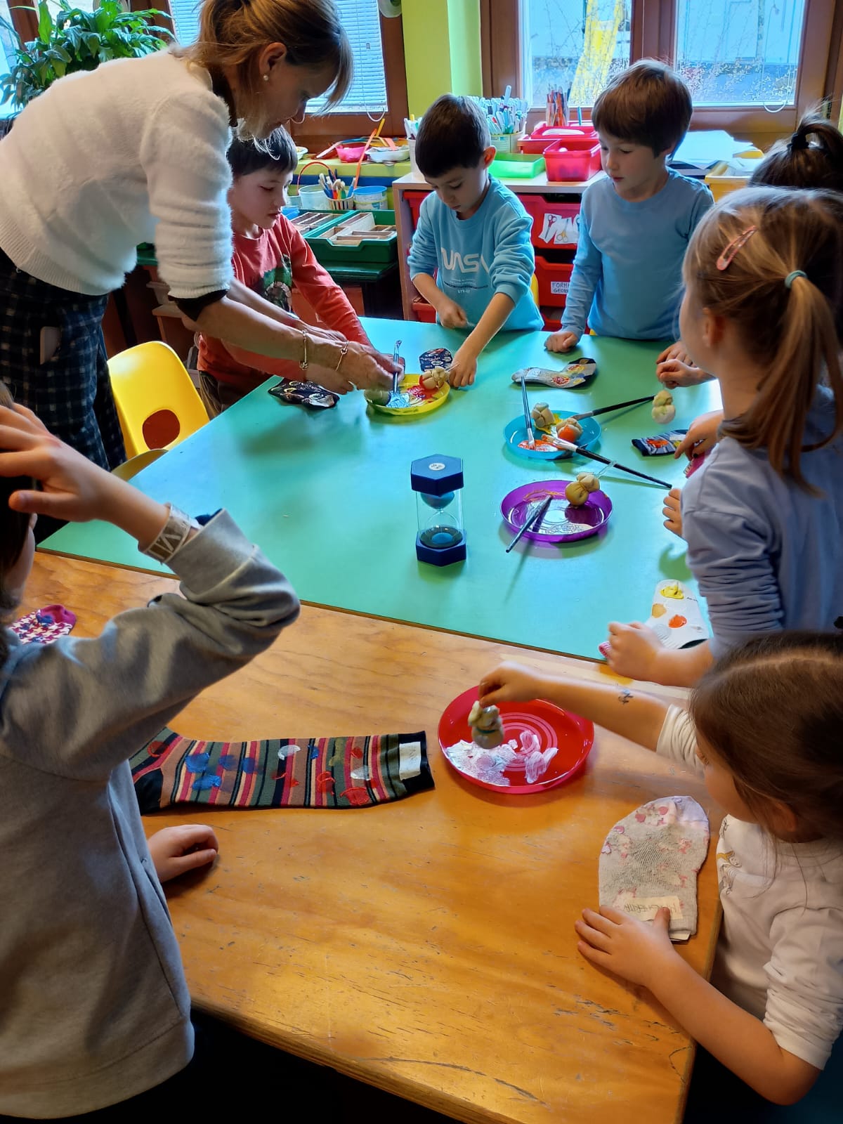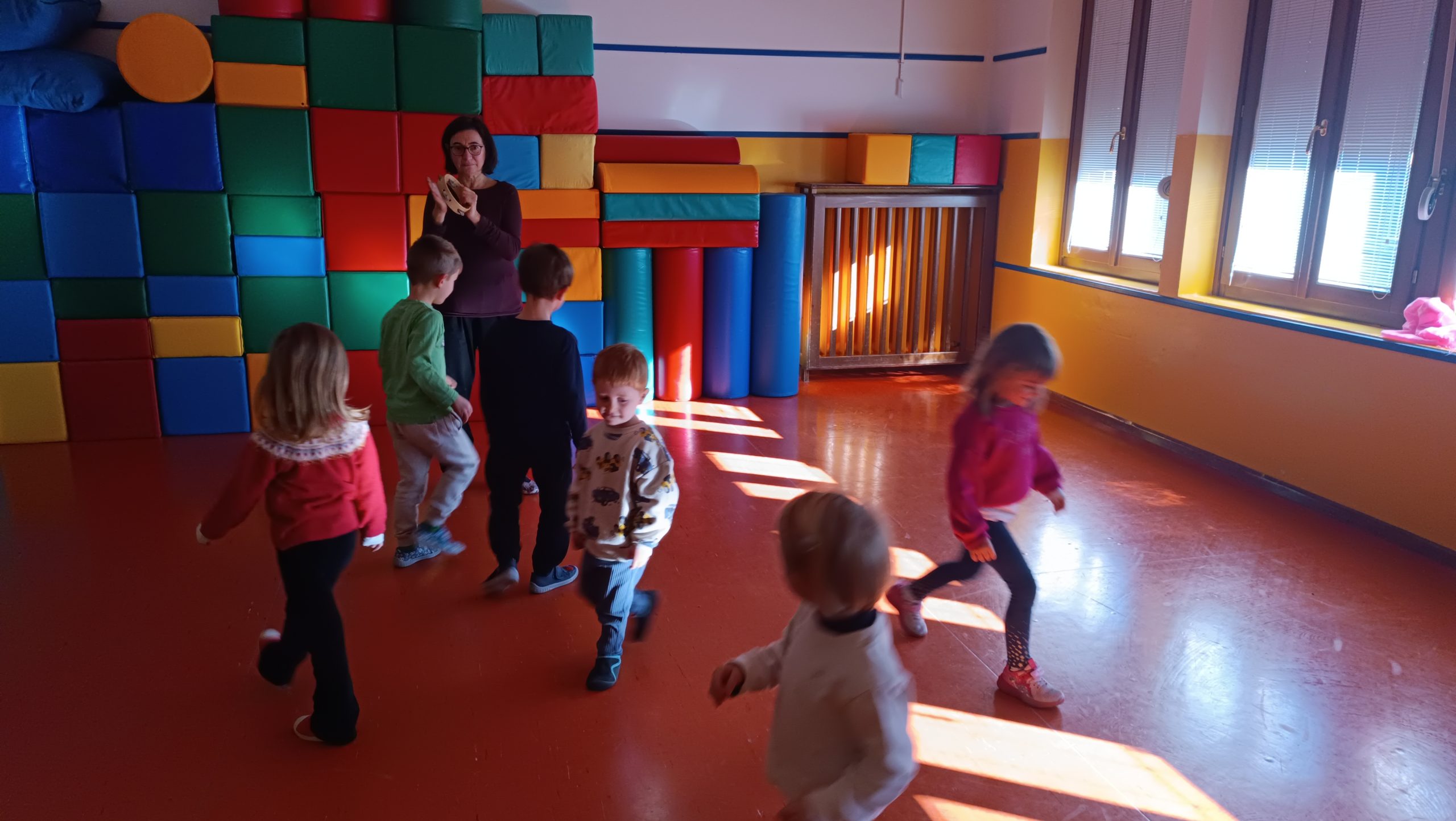 A partire da novembre si è avviato il consueto e consolidato progetto psicomotorio con l’esperto esterno Enrico Bogo: il lunedì, il mercoledì e il venerdì, in piccoli gruppi divisi per età e sezione. Inoltre è ripreso il progetto legato alle danze, come prima dell’emergenza Covid, le due sezioni insieme, dividendo l’ora di intervento tra i tre gruppi di pari età. Nell’ultimo mese dell’anno, come usuale, molte delle attività sono finalizzate alla realizzazione di addobbi, manufatti, disegni ecc. legati al periodo invernale e natalizio. Vari materiali e proposte sono state messe a disposizione dei bambini per permettere la ricerca e l’espressione del gusto estetico, con gradualità di difficoltà per far sì che essi si misurino con le proprie capacità e limiti, per conoscersi e migliorarsi. Provando anche soddisfazione nella realizzazione delle proprie produzioni. Attraverso queste esperienze tutti hanno potuto allenarsi con le forbici e migliorarne l’uso, sviluppando in generale la motricità fine. Particolare attenzione si sta rivolgendo alla corretta impugnatura, in particolare di matite e colori, ma anche in altre situazioni di vita quotidiana, a partire dai piccoli, per prevenire automatismi scorretti, su cui diviene poi difficile intervenire. Hanno conosciuto/riconosciuto e riprodotto forme geometriche, in particolare il cerchio e il triangolo, confrontato misure e dimensioni, iniziato ad ordinare secondo criteri di grandezza. Hanno numerato e iniziato a riconoscere i numeri principali da uno a nove o più, secondo le età.