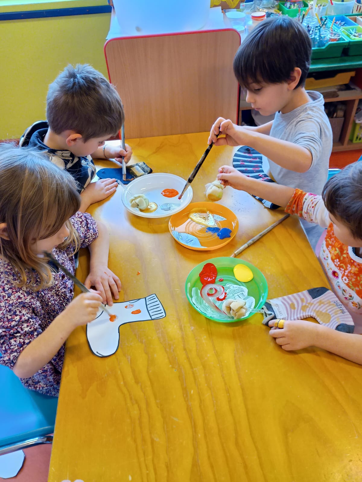In questi mesi continuano i progetti di psicomotricità (con le insegnanti di sezione) e di Danza. Nel periodo precedente al Carnevale molte delle attività in sezione sono state dedicate all’espressività (con giochi mimico-gestuale e travestimenti) e alla creatività con l’uso di vari materiali e supporti. L’espressione grafica e artistica ha riguardato soprattutto la riproduzione del viso, trasformato, dipinto, riprodotto in maschera.