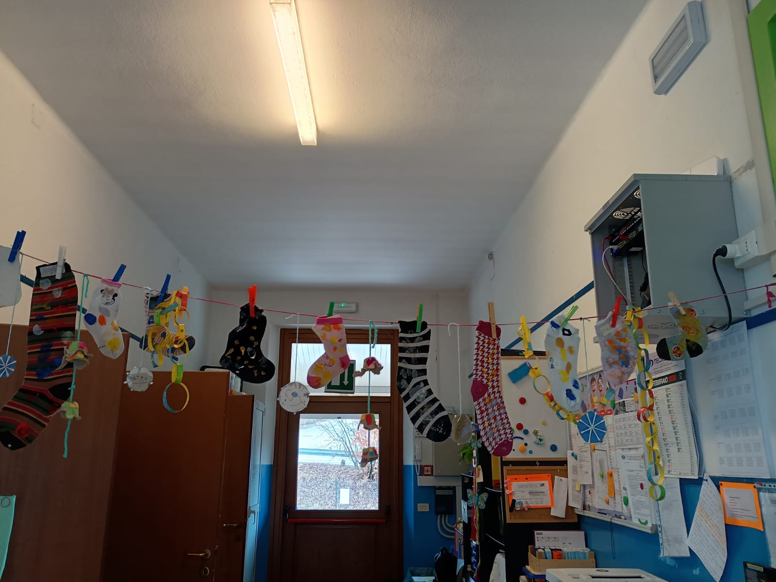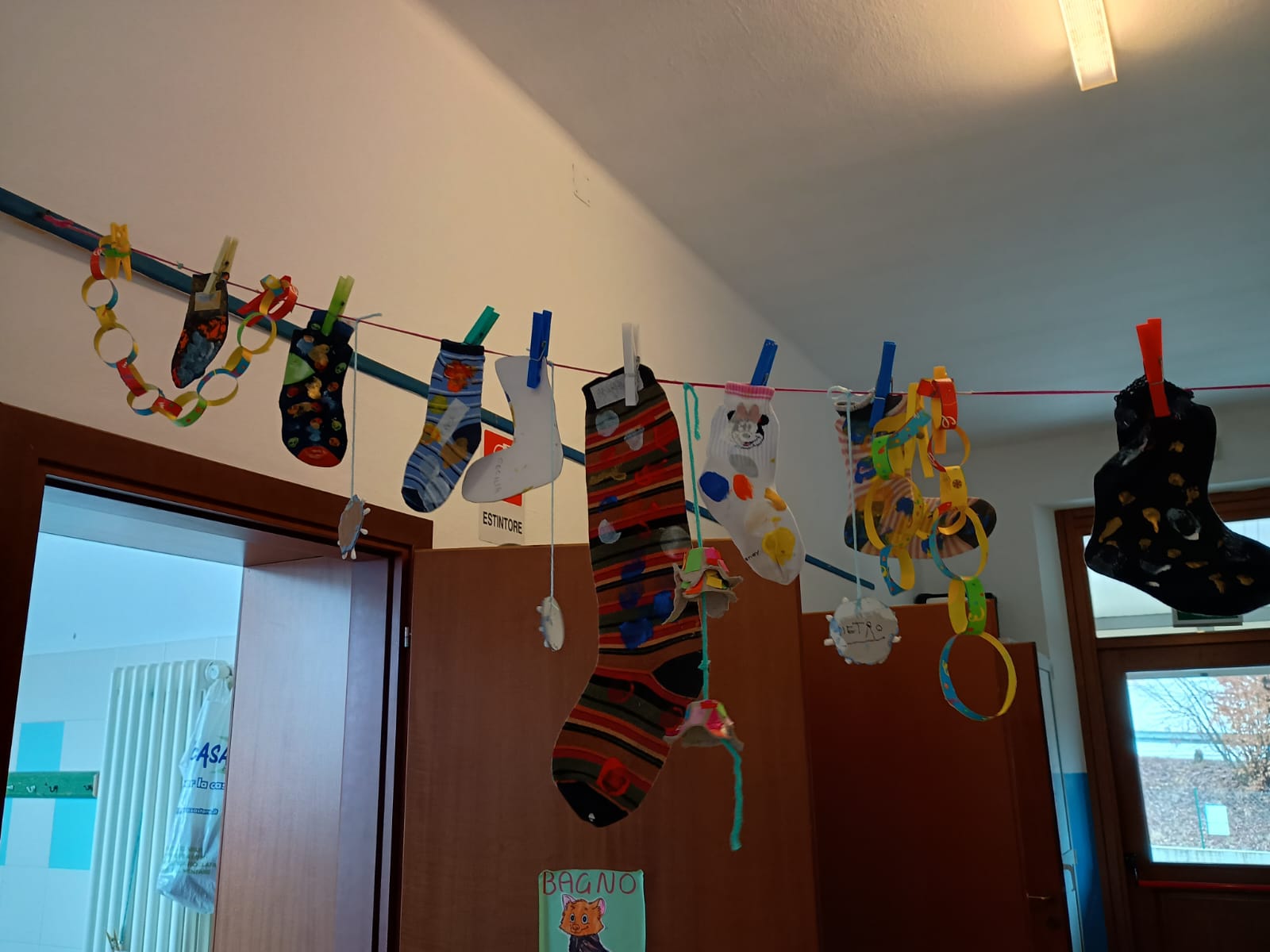 Nell’ultimo mese dell’anno, come di consueto, molte delle attività sono finalizzate alla realizzazione di addobbi, manufatti, disegni ecc. legati al periodo invernale e natalizio.Vari materiali e proposte sono messe a disposizione dei bambini per permettere la ricerca e l’espressione del gusto estetico, con gradualità di difficoltà che permettono loro di desiderare di misurarsi con le proprie capacità e limiti, per conoscersi e migliorarsi. Provando anche soddisfazione nella realizzazione delle proprie produzioni. I grandi e alcuni dei medi hanno anche realizzato dei manufatti e pensierini da regalare al personale della scuola o addobbi per la classe e il plesso. Attraverso queste esperienze tutti hanno potuto misurarsi con le forbici e/o migliorarne e l’uso, sviluppando in generale la motricità fine. Hanno