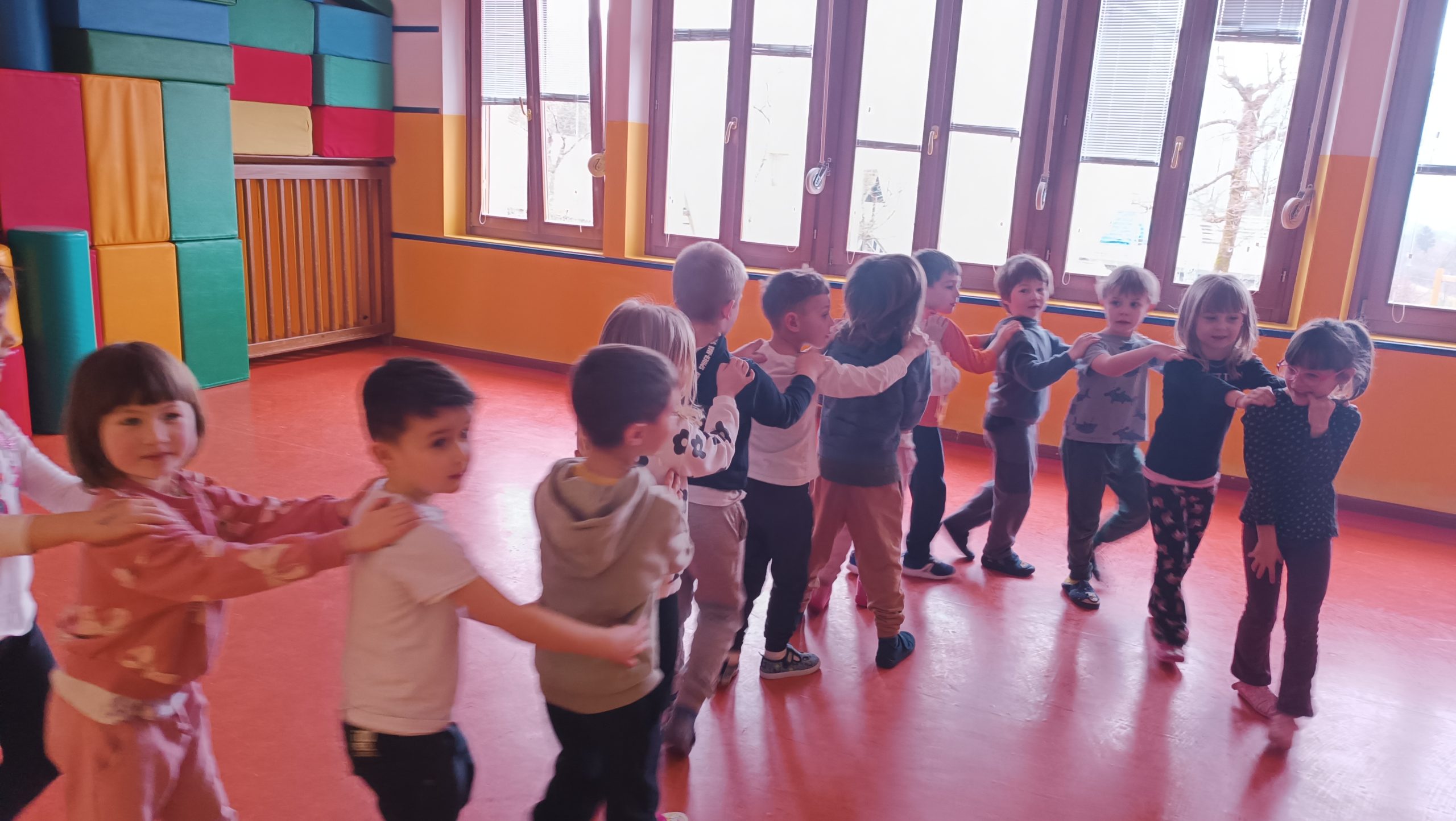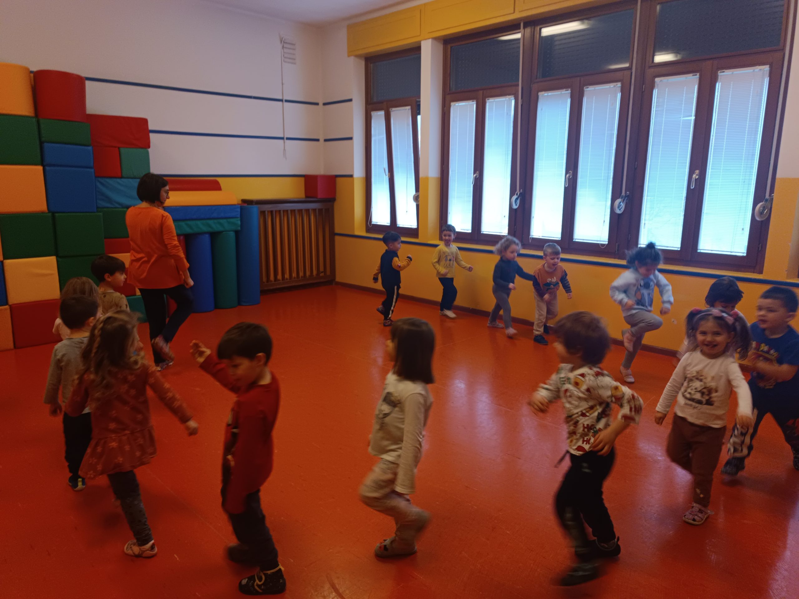 A partire dal mese di gennaio, è iniziato il progetto dedicato alle danze, in salone, il giovedì. A gruppi per età. E’ finalizzato a permettere ai bambini di scoprire e sperimentare il piacere del movimento con la musica, libero o guidato, di imparare a coordinare i movimenti secondo semplici sequenze e in sincronia con uno o più compagni. Alla fine dell’esperienza, c’è sempre un momento di relax e poi la condivisione delle proprie emozioni.