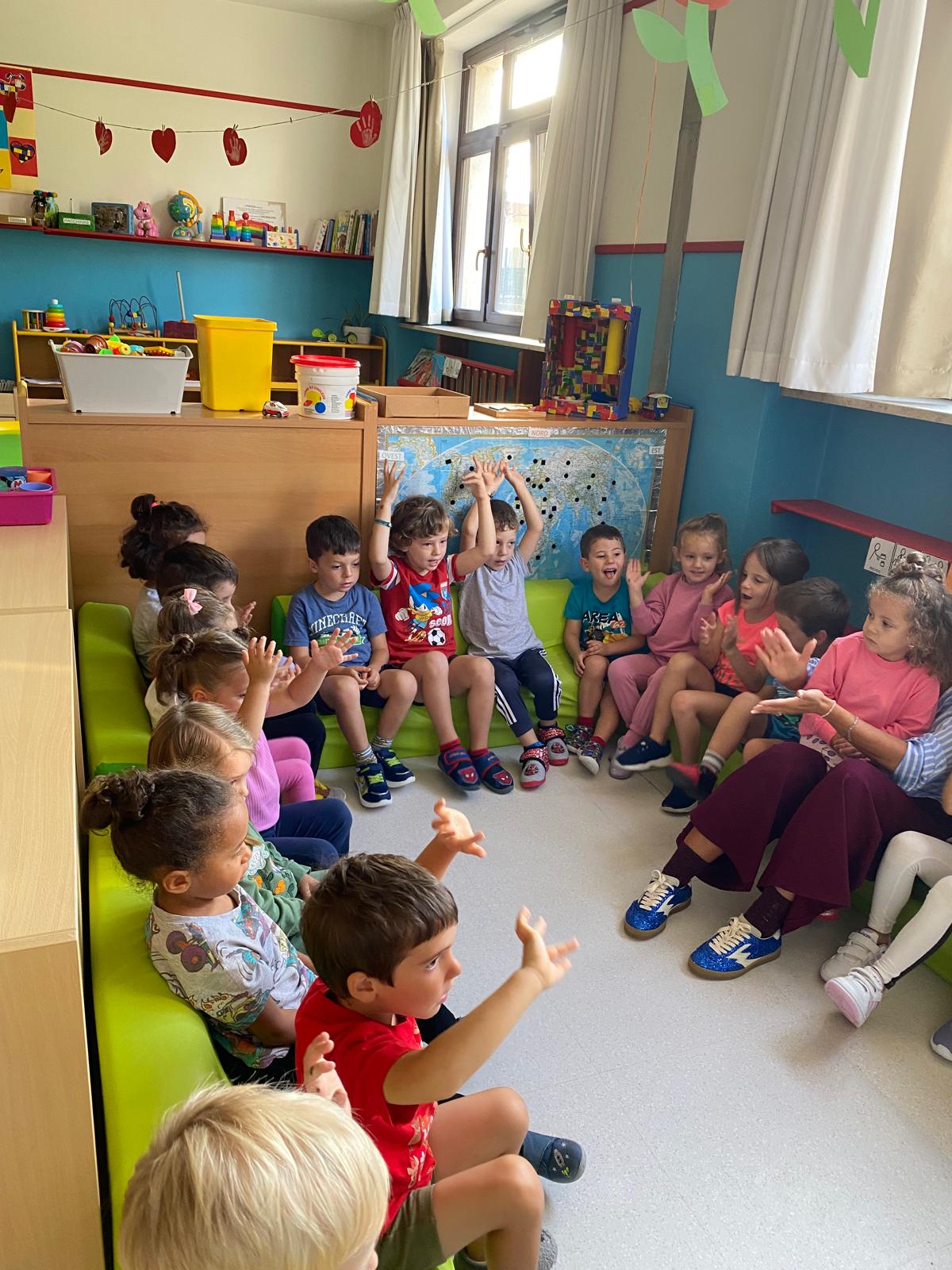 Settembre: momenti di ritrovo, scoperta, inizio di nuovi percorsi! Le prime settimane sono dedicate all’accoglienza: i bambini conoscono gli ambienti della scuola, le routine della giornata scolastica, per qualcuno è un ritrovo con i compagni e le maestre, per altri una nuova conoscenza. Si lavora tutti insieme per creare un ambiente sereno e di benessere.