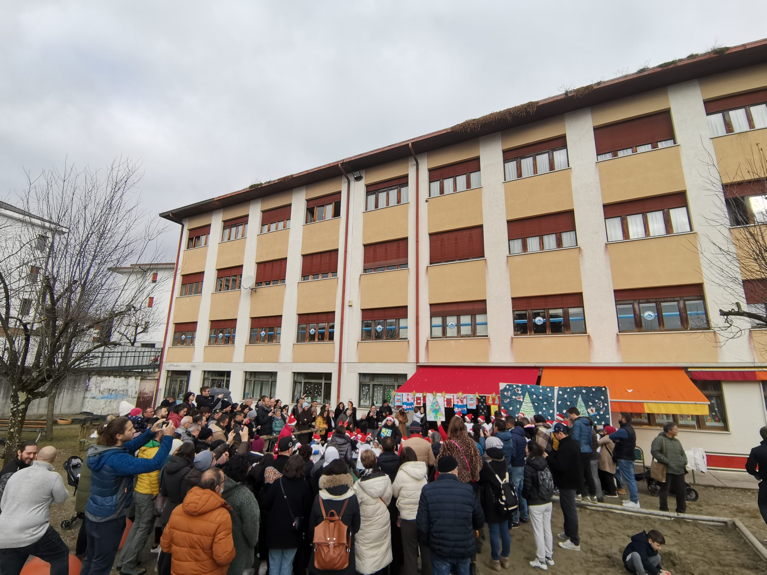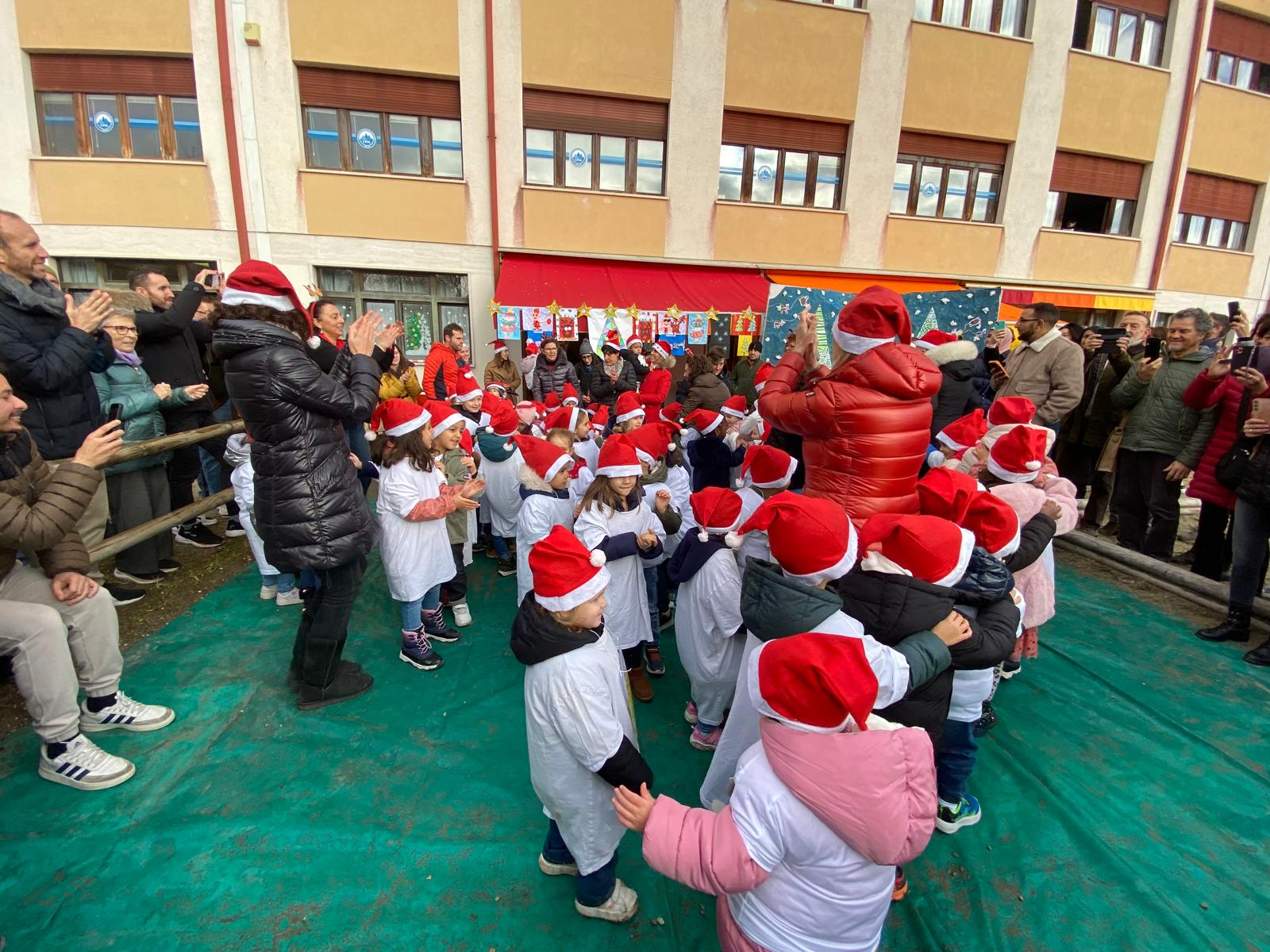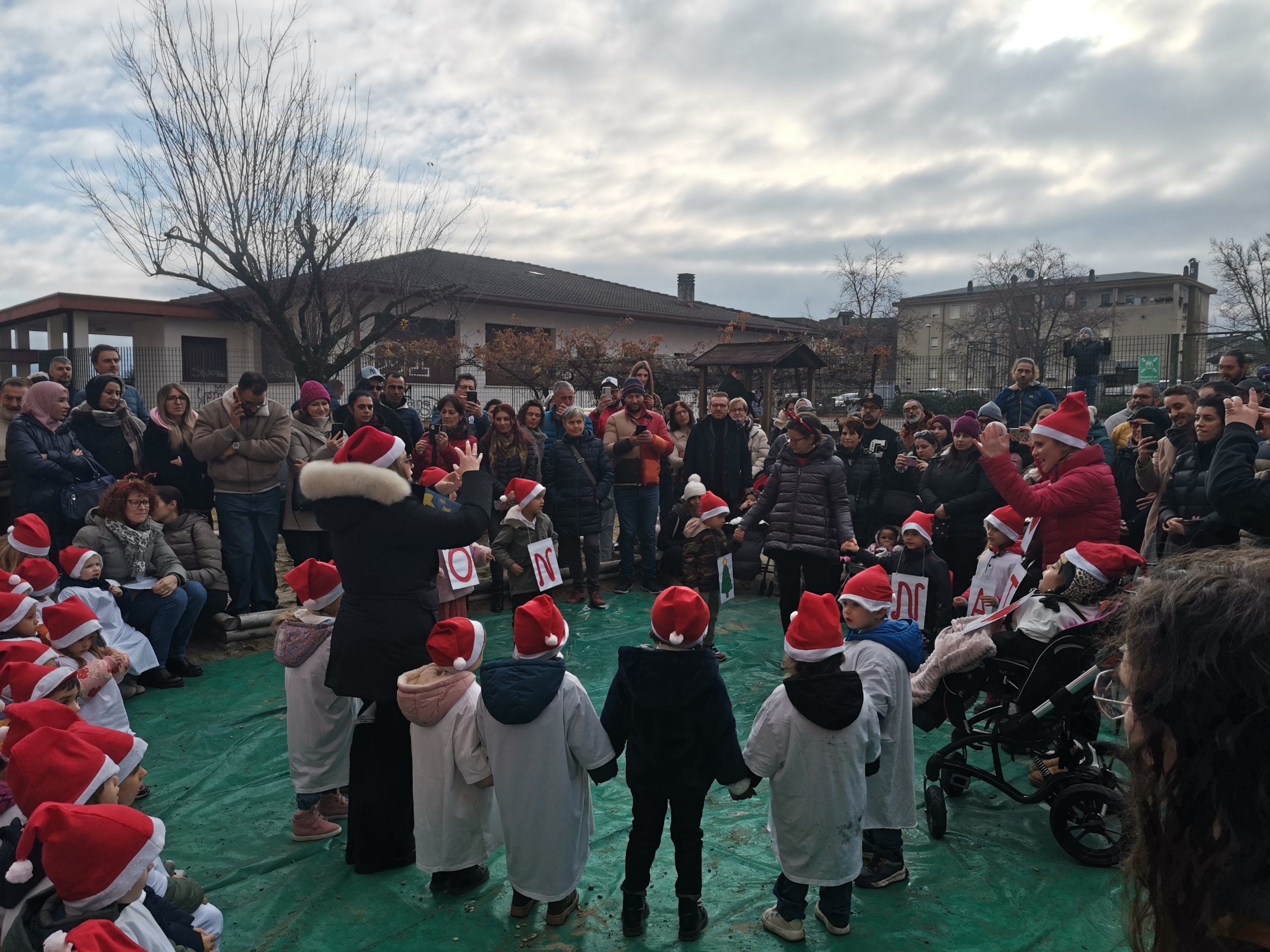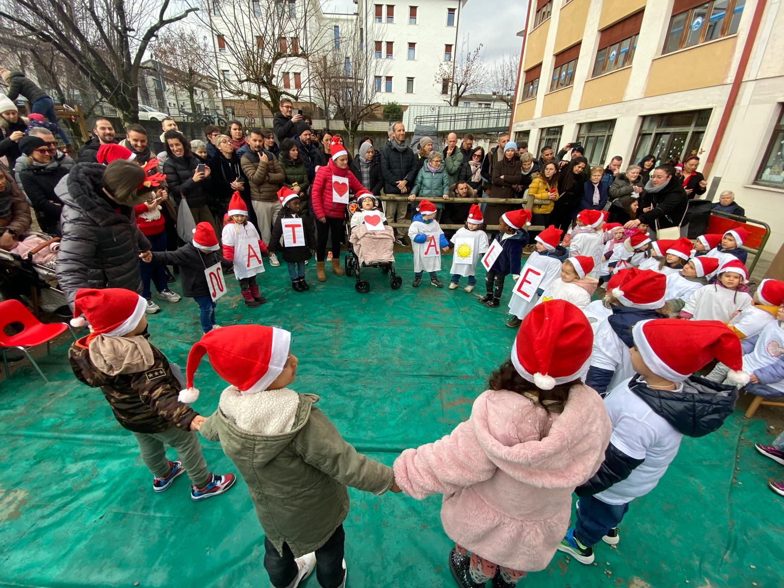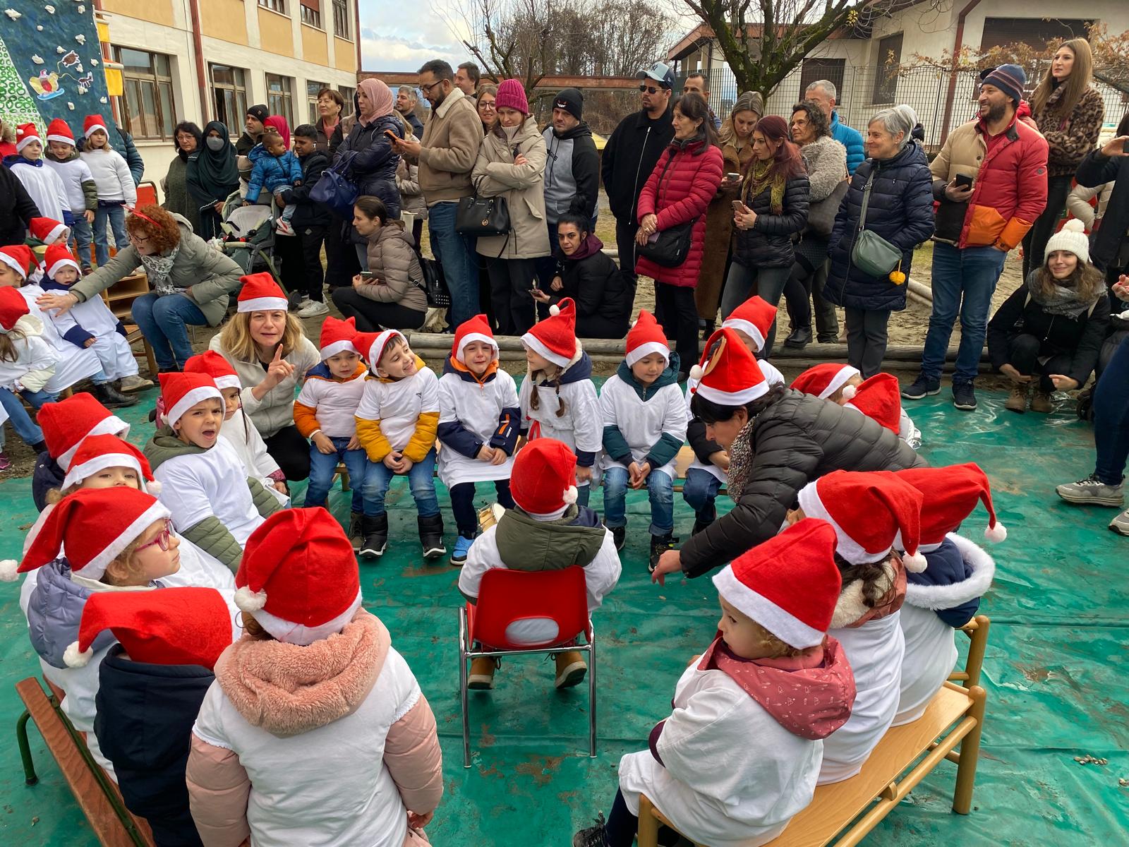 Con la tradizionale festa di natale nel giardino della scuola, i bambini e le insegnanti hanno augurato buone feste alle famiglie attraverso canti e balli.