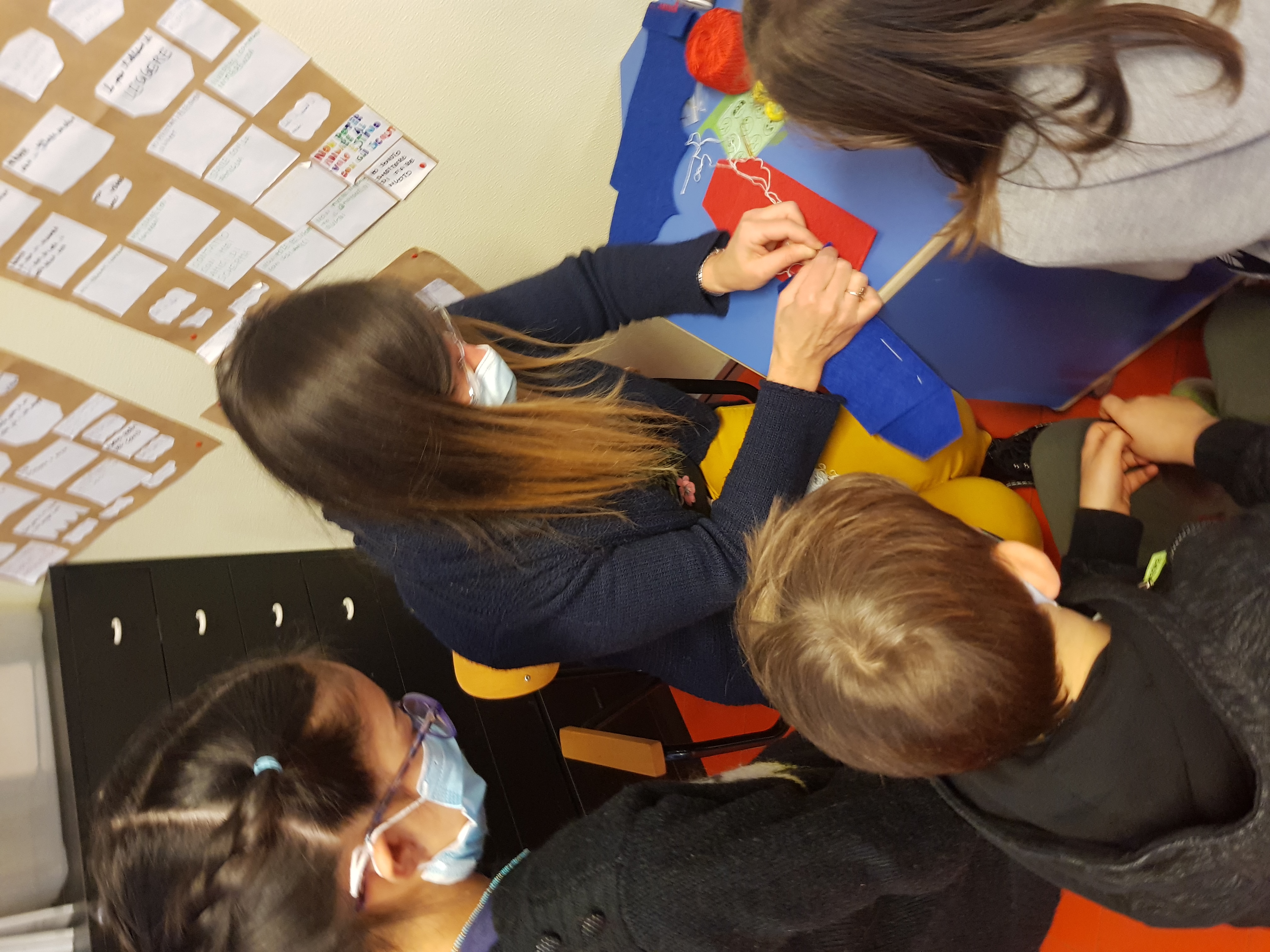 La classe 5^ nel mese di dicembre si è cimentata nel laboratorio di cucito. Durante il lockdown, i bambini avevano espresso il desiderio di poter lavorare con ago e filo; ed ecco fatto: per Natale i ragazzi e le ragazze si sono trasformati in dei piccoli sarti e hanno preparato il loro lavoretto di Natale, creando un astuccio in panno lenci. Questo laboratorio interdisciplinare ha coinvolto più materie nelle diverse fasi di lavoro: matematica, geometria, italiano, arte e tecnologia. Gli alunni hanno ragionato sulle dimensioni dell’astuccio, calcolando quanto tessuto potesse servire; hanno creato un prototipo per poi passare alla realizzazione, descrivendo in un testo regolativo le varie fasi di lavoro. Ogni alunno ha scelto un tipo di cucitura da eseguire e le decorazioni da applicare. Il risultato finale è stato davvero ottimo.